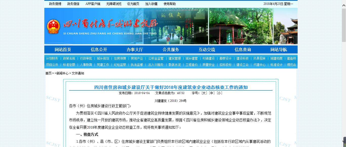 川建建發(fā)〔2018〕294號 各市(州)住房城鄉(xiāng)建設(shè)行政主管部門: 為貫徹落實《四川省人民政府辦公廳關(guān)于促進建筑業(yè)持續(xù)健康...
